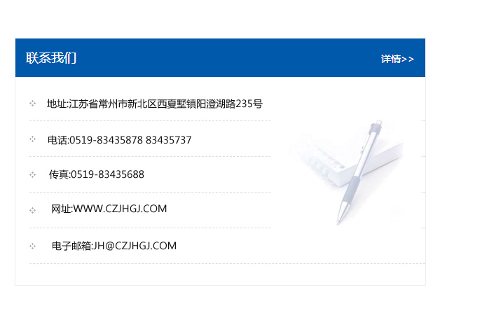 地址:常州市新北區友邦商務大廈1幢16、17層  電話:0519-85101652  傳真:0519-85112595  郵編:213022  網址:www.cz-jiayue_cn.xieyisenlin.com  郵箱:xiajifengaa@163.com